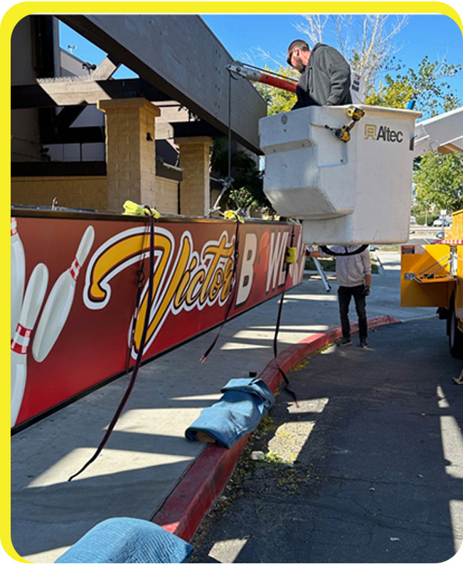 Upon completion of your custom sign project, the concluding step involves meticulous and precise installation. Our skilled technicians, trained in the use of appropriate tools and equipment-including cranes, bucket trucks, boom lifts, and scissor lifts-ensure of both indoor and outdoor installations.